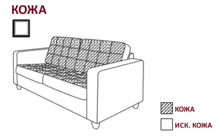 Расположение кожи и экокожи в диванах Камелот